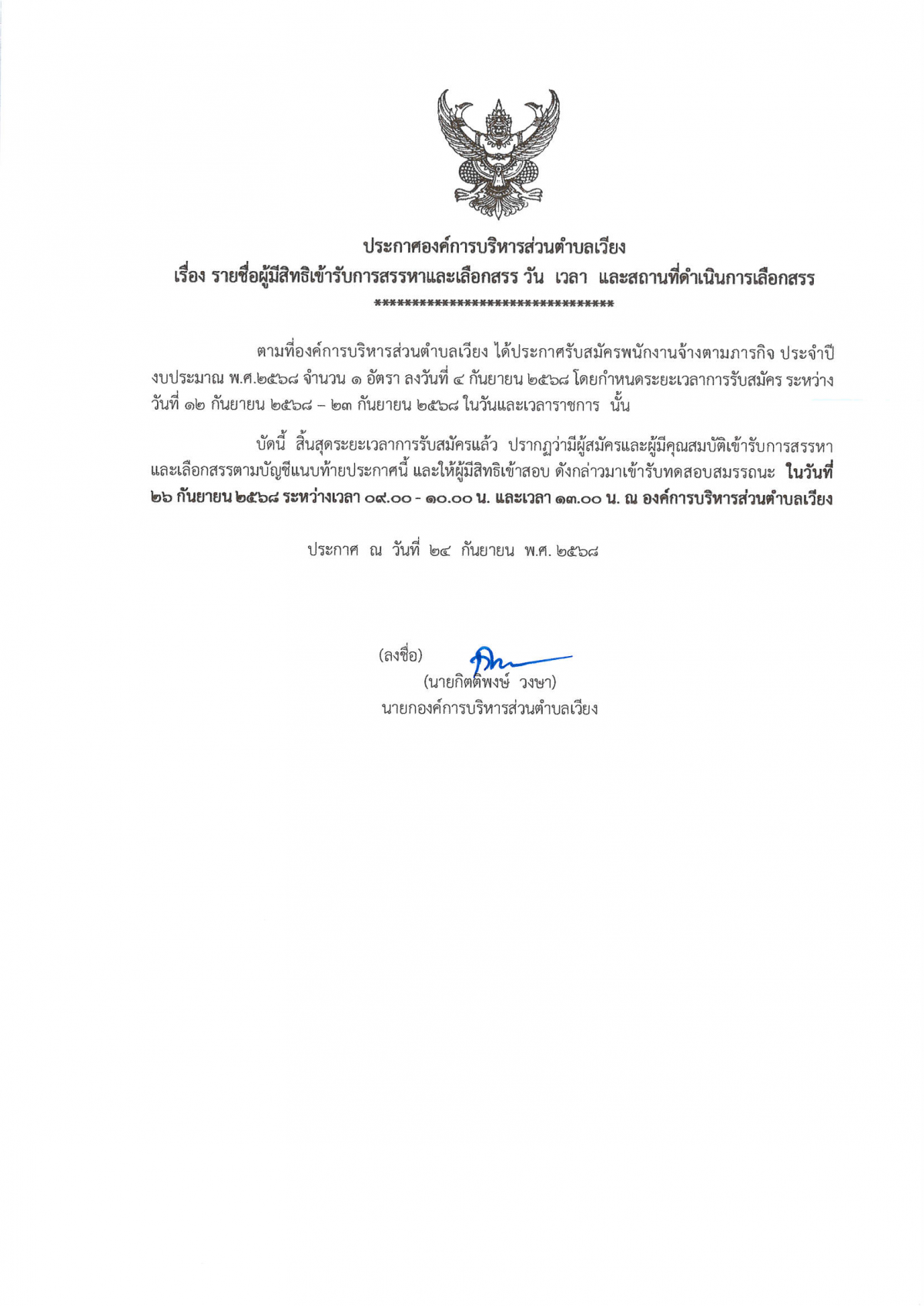 ประกาศ รายชื่อผู้มีสิทธิเข้ารับการสรรหาและเลือกสรร วัน เวลา และสถานที่ดำเนินการเลือกสรร พนักงานจ้างตามภารกิจ ตำแหน่ง ผู้ช่วยนายช่างโยธา(ประเภทผู้มีคุณวุฒิ) วันที่ 24 กันยายน 2568 [ 14:55 น. ] เข้าชม 103 ครั้ง พิมพ์ ข่าวประชาสัมพันธ์ ประกาศ รายชื่อผู้มีสิทธิเข้ารับการสรรหาและเลือกสรร วัน เวลา และสถานที่ดำเนินการเลือกสรร พนักงานจ้างตามภารกิจ ตำแหน่ง ผู้ช่วยนายช่างโยธา(ประเภทผู้มีคุณวุฒิ) 1 อัลบั้มภาพ